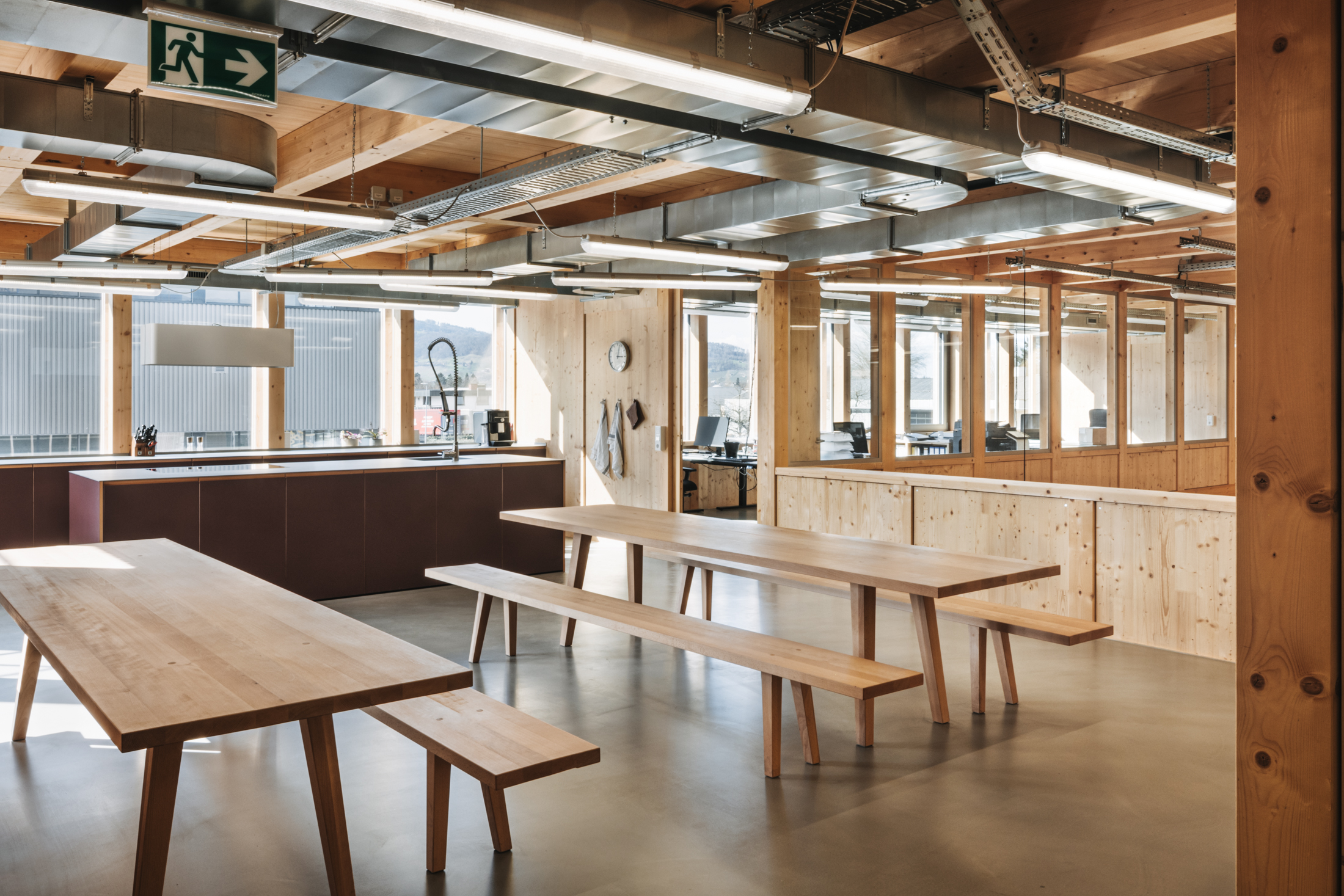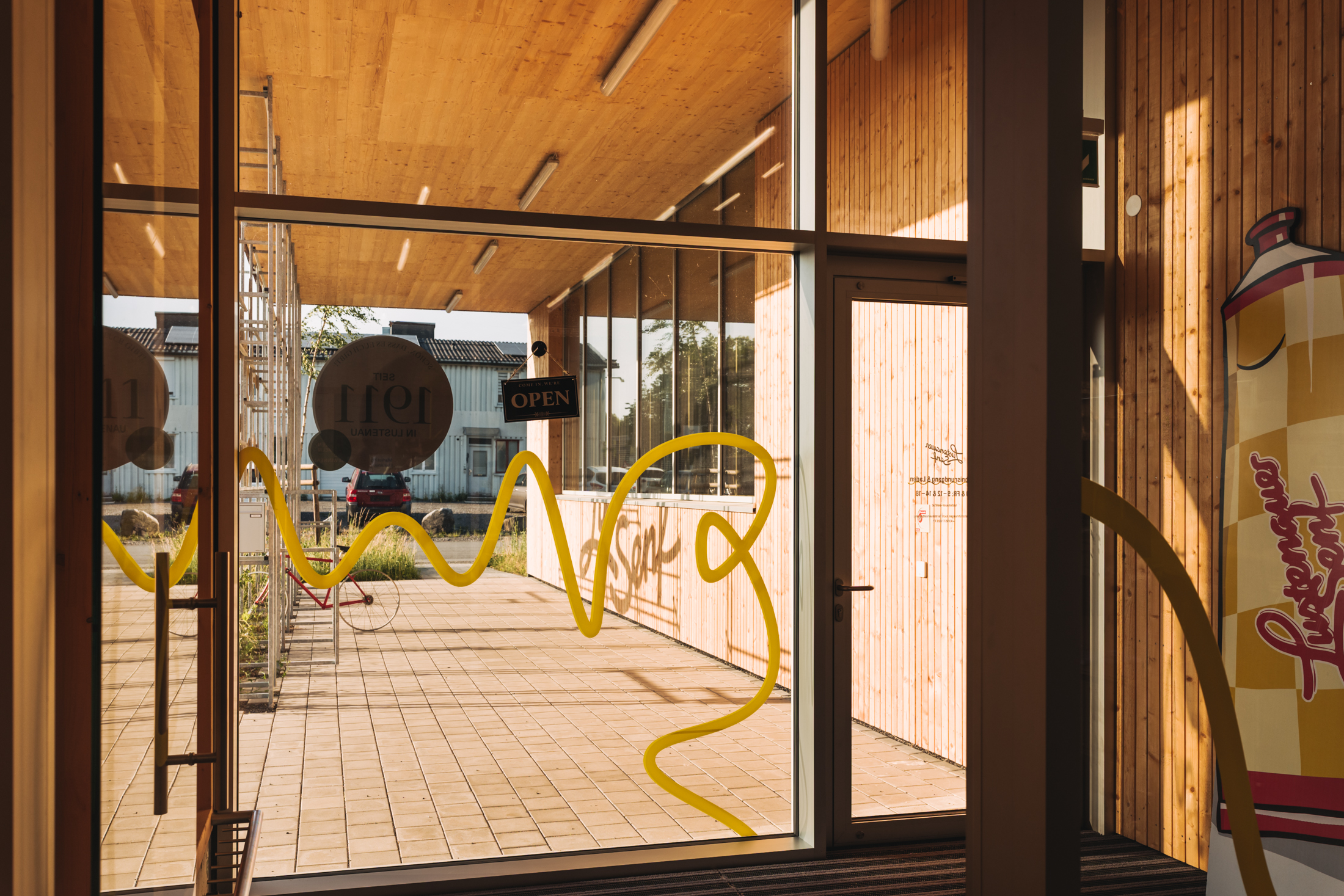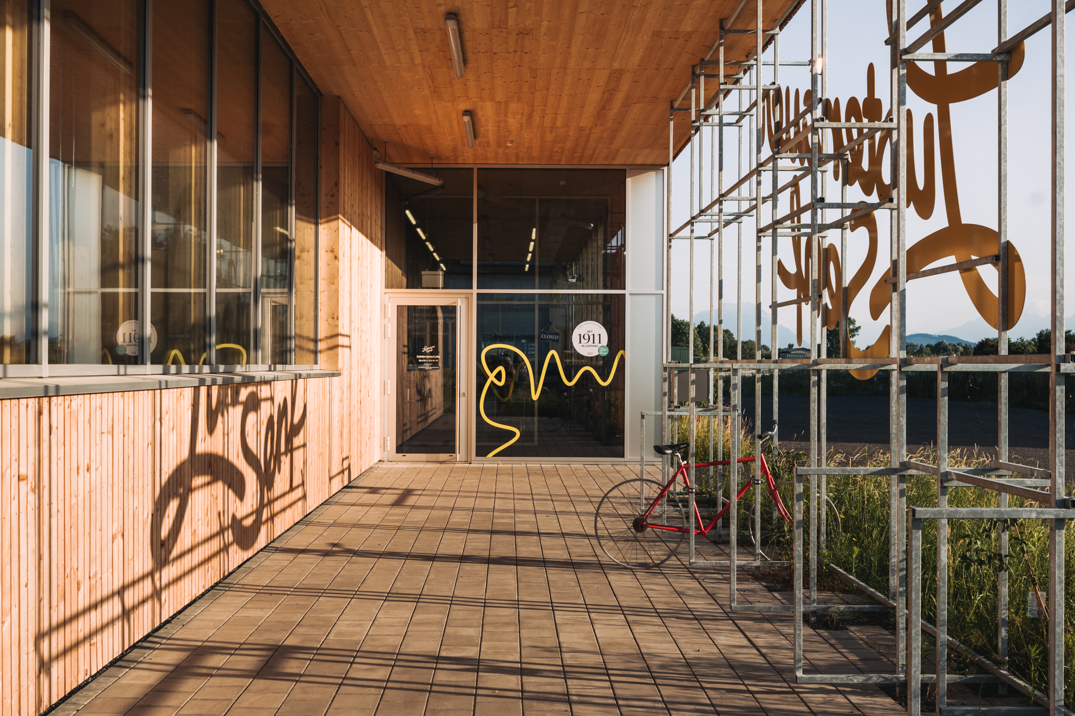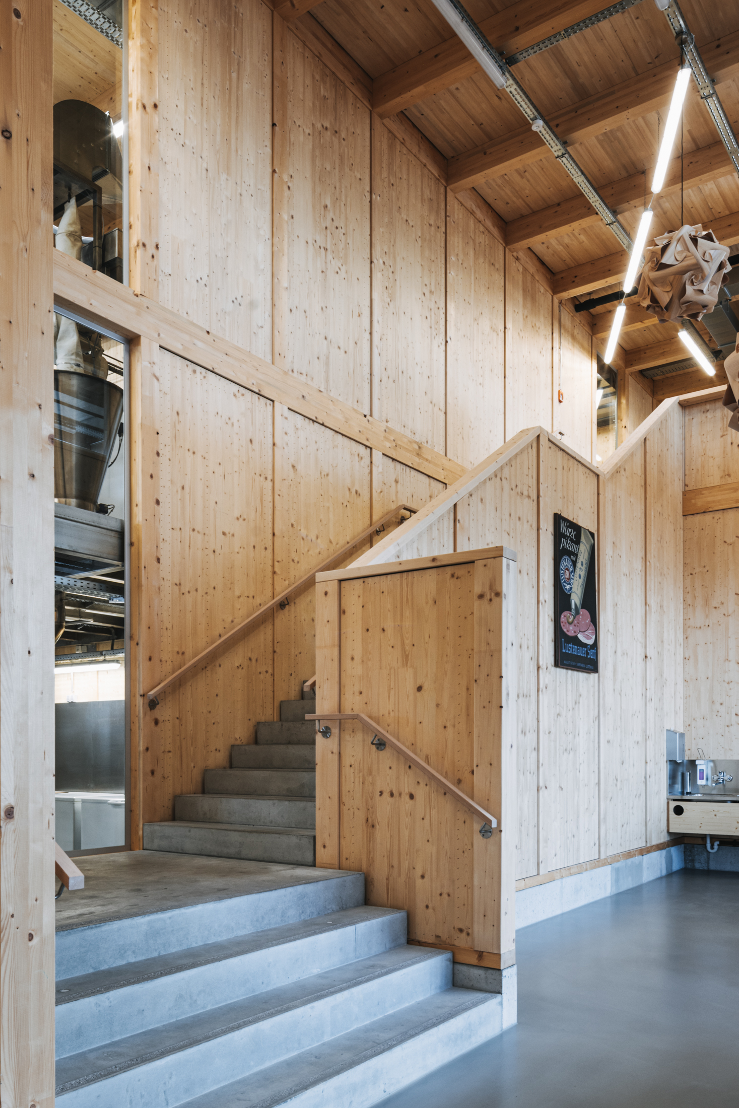 Uns erinnert die Architektur mit dem Atrium, das den Klang der Gespräche aus dem Senfladen in das obere Stockwerk trägt, an ein Holzinstrument. Dabei wäre eher die Klarinette für das Unternehmen bezeichnend, sie findet sich sogar im Senfmuseum, das mit historischen Informationen und Senfsäcken zum Reingreifen in einem Rundgang durch Lagerraum und Produktion zu mäandern scheint. Am Ende des Rundgangs gelangt man zu einer Kommode, die neben der Klarinette u.a. auch einen QR-Code beinhaltet, der auf den Vorarlberger Mundart Song LUSTNAUA SENF des Dornbirner Rappers Justin Winsauer aka DORABIRA MC verweist. Zufällig entdeckten die Böschs die Hommage an ihre Marke, deren Tradition und Verwendung und integrierten sie kurzerhand in ihr Museum.