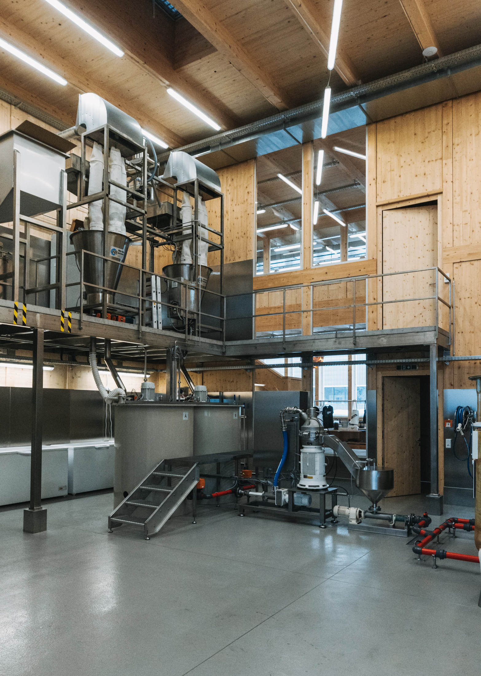 Gemeinsam mit  der W*ORT-Leiterin Gabi Hampson besuchte unsere Geschäftsführerin Mirjam Steinbock den Betrieb, um Stefan und Felix Bösch zu treffen. Das 2024 neu eröffnete Gebäude eint den Senfladen, das Büro und die offene Küche mit der Produktionsstätte und dem Senfmuseum und riecht weniger nach Senf als nach Holz. Die Optimierung der Räumlichkeiten entstand in Zusammenarbeit zwischen Senfer:innen und Architekt:innen. "Entstanden ist ein Baukörper, der weit über einen Gewerbebau hinaus geht. Durchblicke, Einblicke und Transparenz zeigen ehrlich und einfach, wie ein Lebensmittel entsteht", so die Architektin Julia Kick erläuternd.